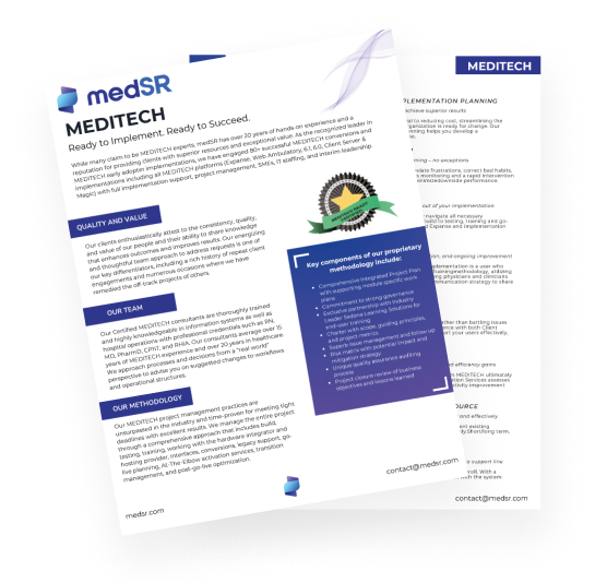 While many claim to be MEDITECH experts, medSR has over 30 years of hands-on experience and a reputation for providing clients with superior resources and exceptional value.